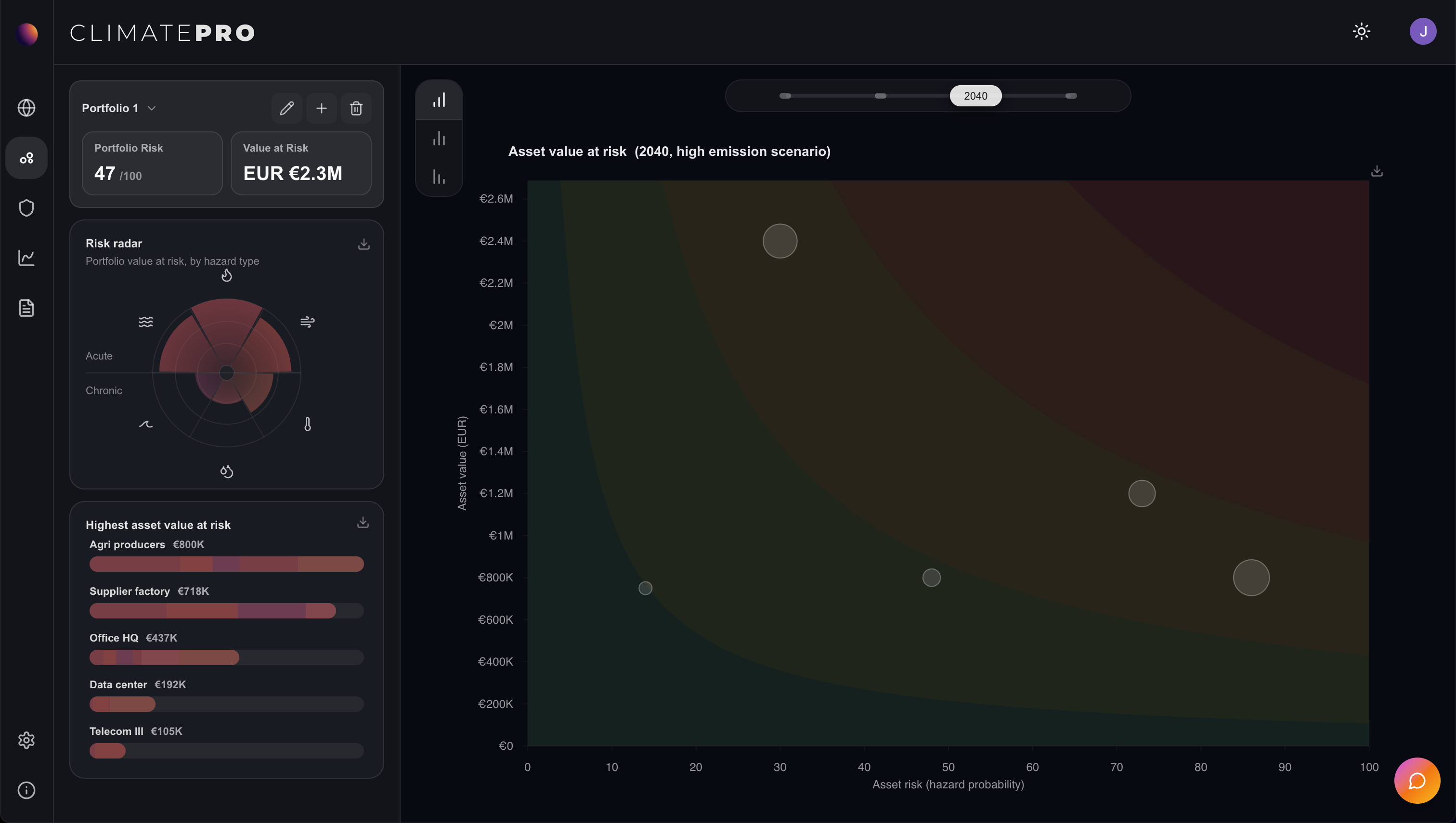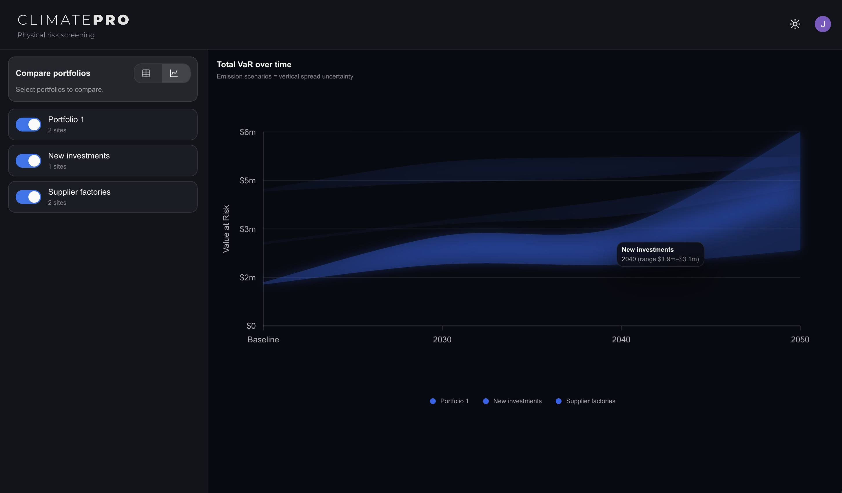 Understand how physical risks affect your portfolio in different regions and climate scenarios.